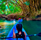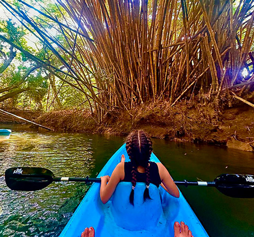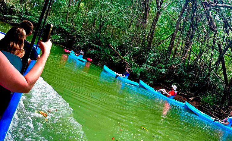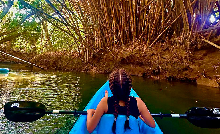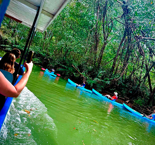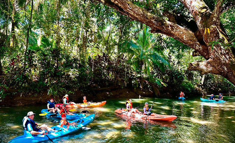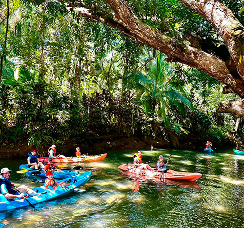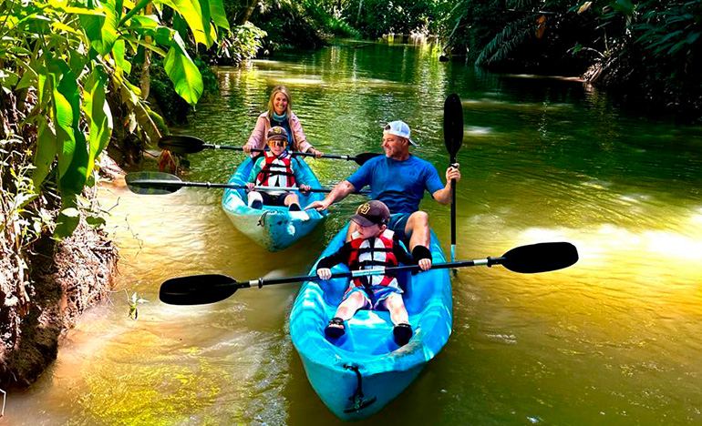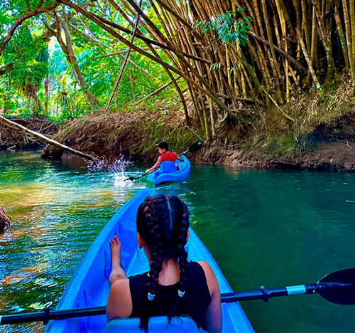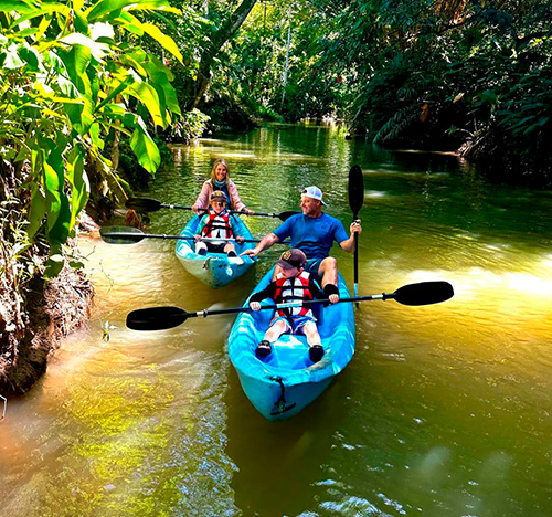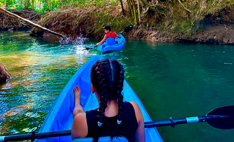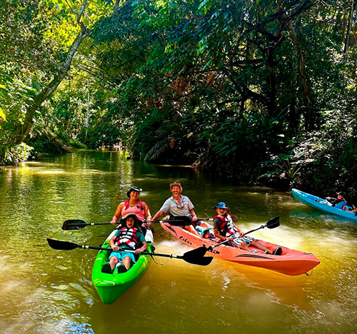 We offer you a tour that starts at our property where two small freshwater rivers meet by canal that is surrounded by beautiful vegetation and animals. The tour starts at our property where two small freshwater rivers meet by channel that is surrounded by beautiful vegetation, such as heliconias, gingers, ferns, palms, guarumos, observing nests of ants and termites, also find crocodiles, birds, snakes and white-faced monkeys. Tour time 1hr 30 min