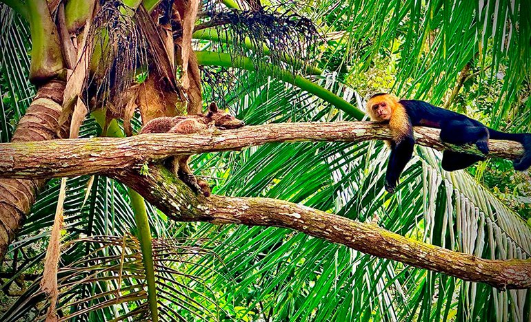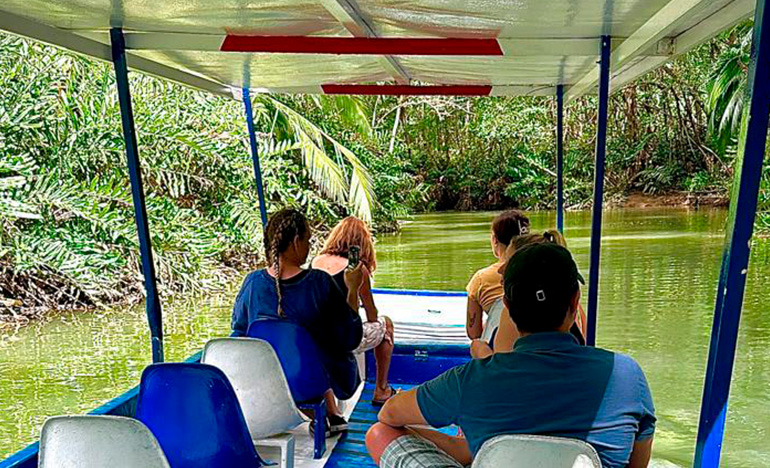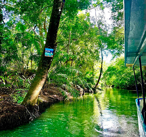 We offer you a tour that starts at our property where two small freshwater rivers meet by canal that is surrounded by beautiful vegetation and animals. The tour starts at our property where two small freshwater rivers meet by channel that is surrounded by beautiful vegetation, such as heliconias, gingers, ferns, palms, guarumos, observing nests of ants and termites, also find crocodiles, birds, snakes and white-faced monkeys. Tour time 1hr 30 min